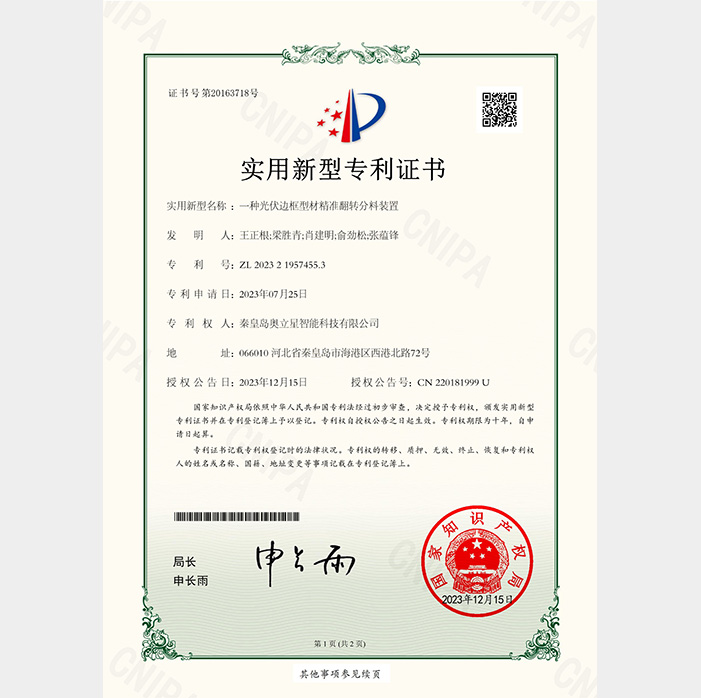 秦皇島奧立星智能科技有限公司成立于2019年,位于河北省秦皇島市,是一家集研發(fā)、制造和銷(xiāo)售為一體的光伏自動(dòng)化成套設(shè)備的企業(yè)。憑借多年的自動(dòng)化研發(fā)制造經(jīng)驗(yàn),奧立星公司已成為光伏組件廠(chǎng)家的合作伙伴,客戶(hù)遍及二十余省、市、自治區(qū),產(chǎn)品遠(yuǎn)銷(xiāo)韓國(guó)、東南亞多個(gè)國(guó)家和地區(qū),并以?xún)?yōu)質(zhì)的產(chǎn)品和售后服務(wù)贏(yíng)得世界光伏行業(yè)的青睞。 更多介紹